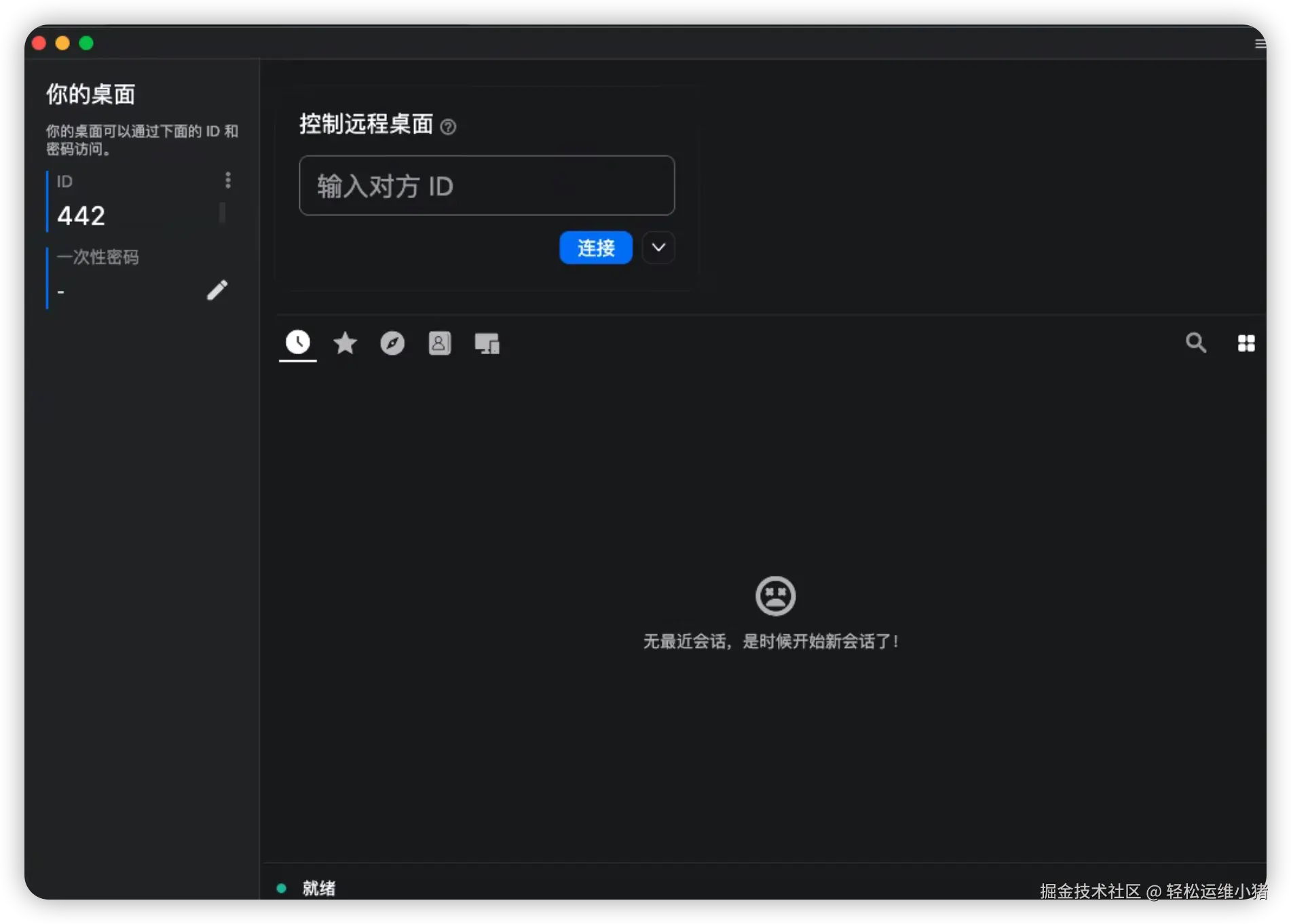 下载对应客户端安装包,安装运行后,RustDesk 客户端界面如下。