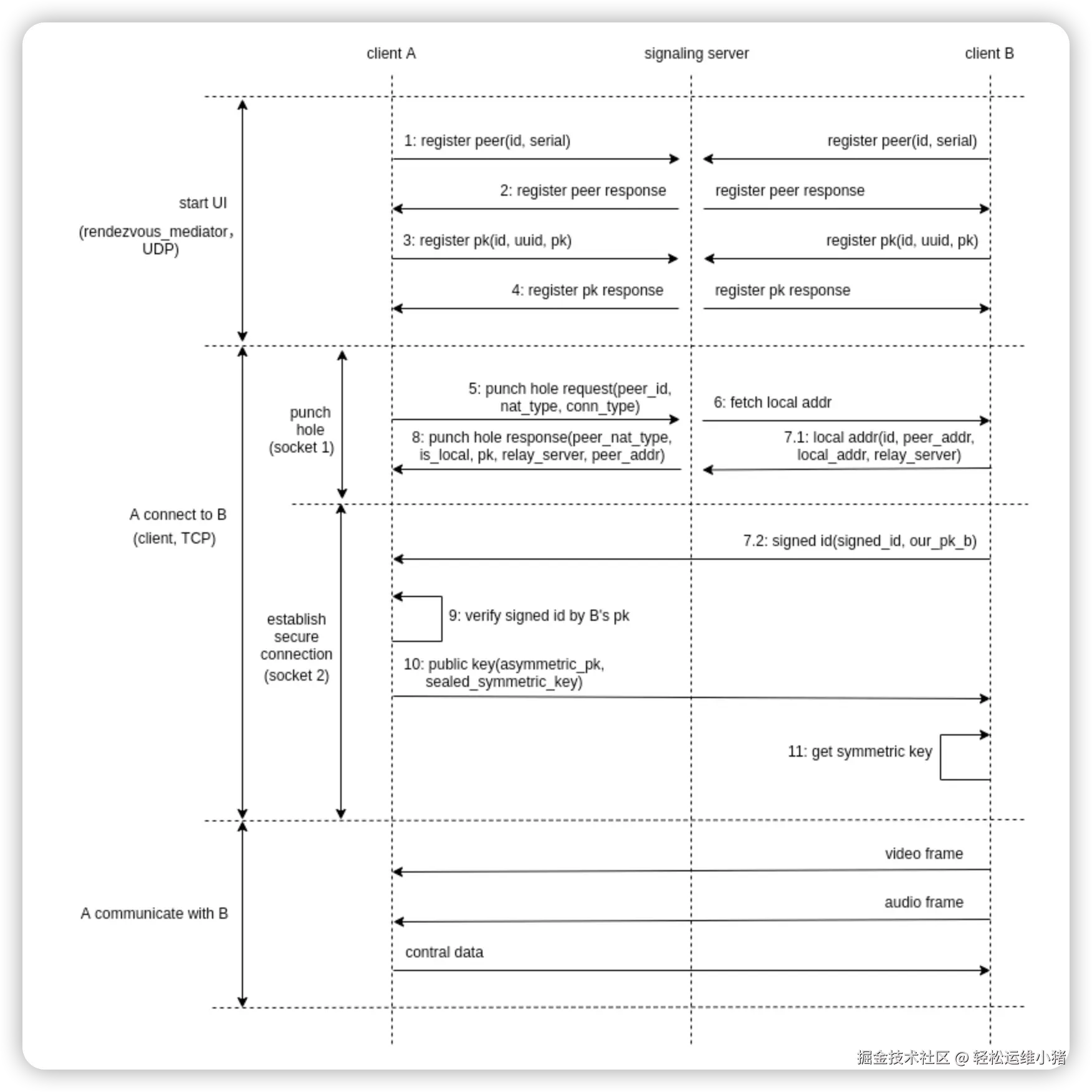 然后,ID 服务器尝试使用 hole punching 将 A 和 B 直接相互连接。