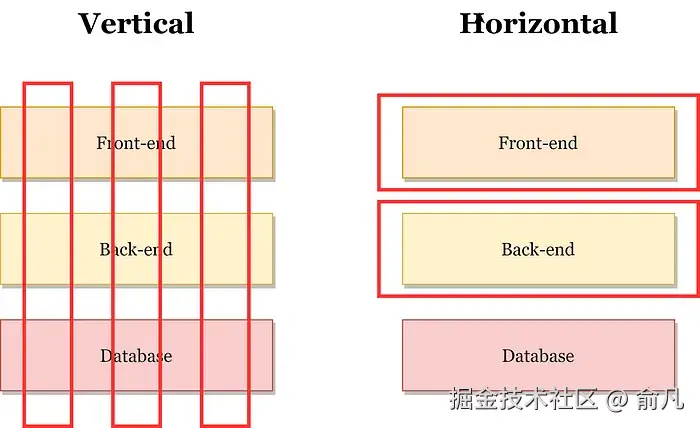 有两种拆分方式:垂直和水平。垂直拆分将用户故事拆分到所有架构层:前端、后端和数据库。另一方面,水平拆分是基于架构层的,例如前端、后端和数据库开发,每个PBI(或用户故事)都将分配给后端、前端和数据库开发人员。敏捷遵循垂直拆分,因为用户故事是独立的、可管理的、可发布的,质量更好,生产力更高。