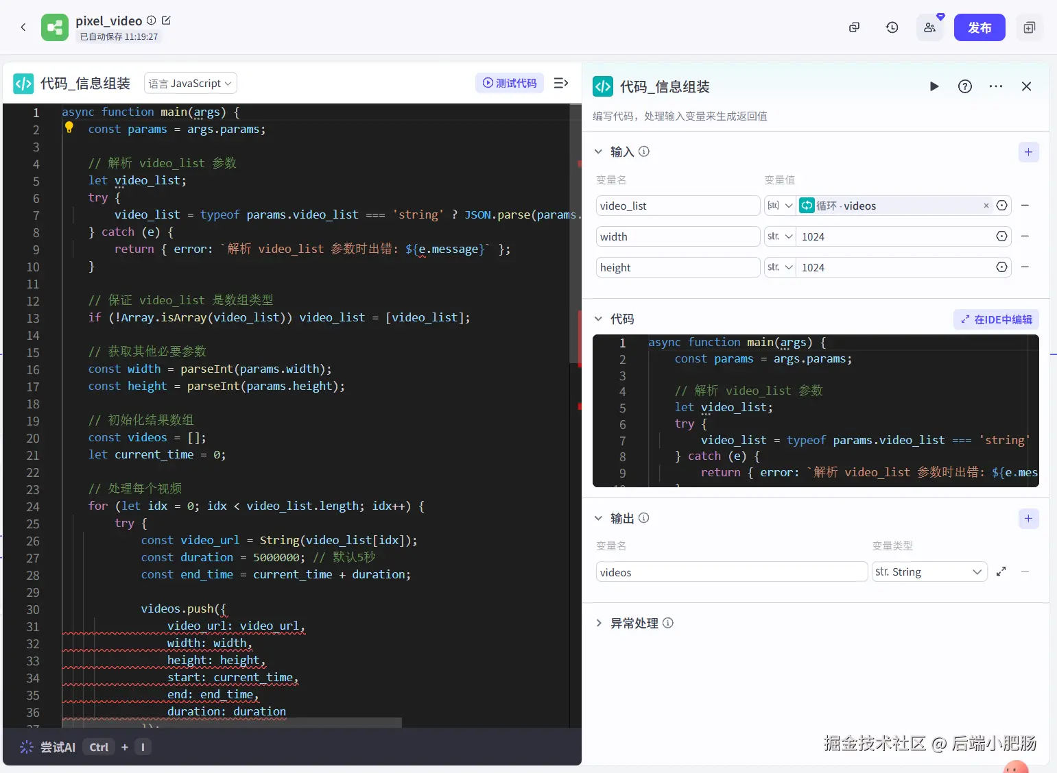 代码组装(代码): 这个节点承接视频生成线路,作用是将前置节点生成的视频转换为剪映小助手插件需要的格式。