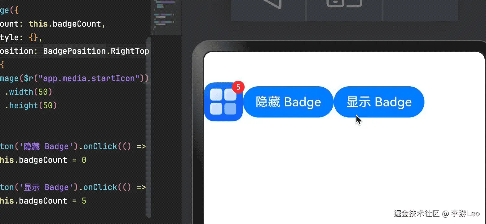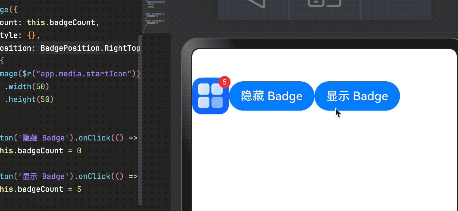 Badge 只支持包裹一个子组件(比如图标、文字等); - 你可以动态控制