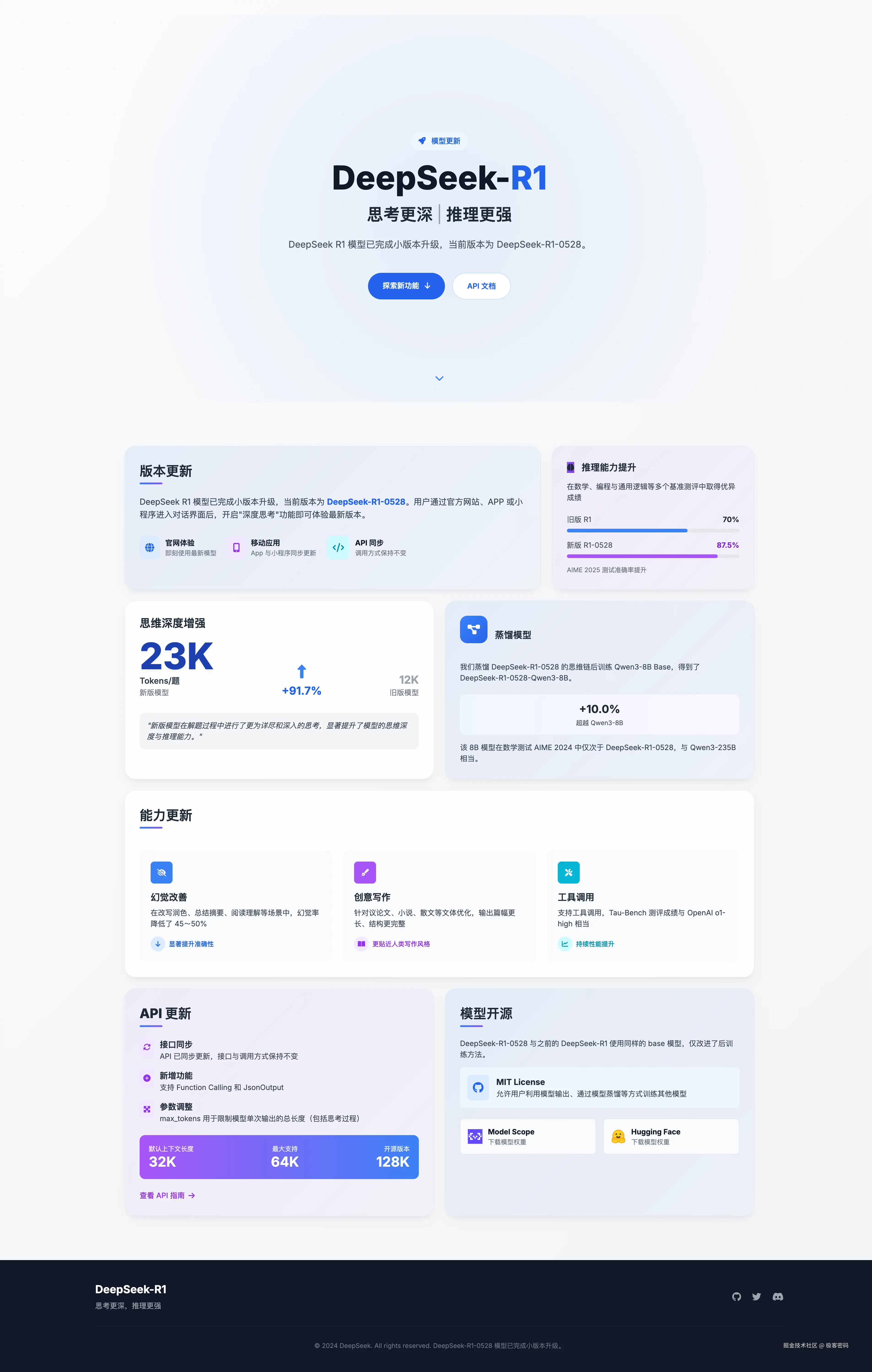 用户通过官网/APP/小程序进入对话界面,开启「深度思考」功能即可解锁新版本