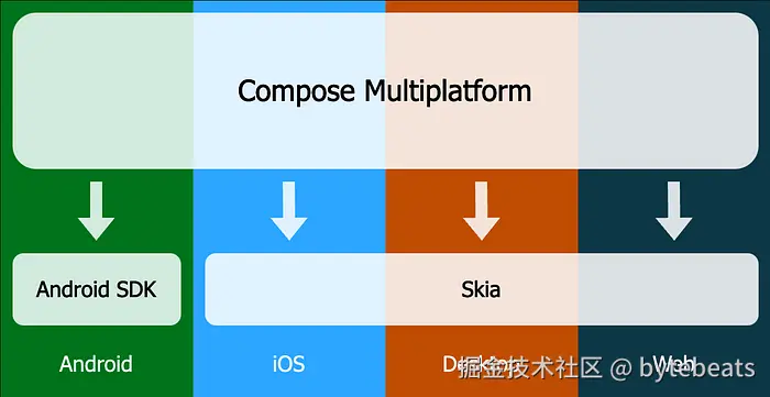 在深入探讨为 Kotlin 跨平台项目添加 Shader 的可用 API 之前, 让我们先看看使 Compose 跨平台能够无缝运行的基本构建块. 请考虑以下图表: