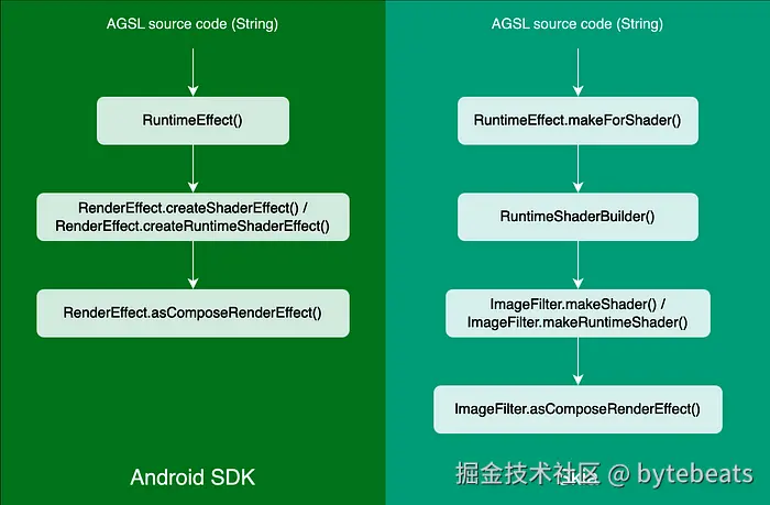 RuntimeShader(): 从输入的 AGSL 源代码创建新的RuntimeShader.RenderEffect.createShaderEffect()/RenderEffect.createRuntimeShaderEffect(): 从输入参数创建新的RenderEffect.RenderEffect.asComposeRenderEffect(): 创建一个与Compose兼容的RenderEffect.