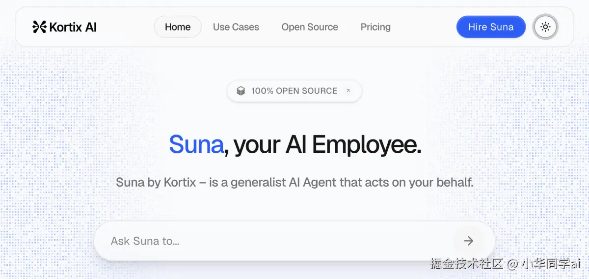 一句话总结:Suna是由Kortix推出的全球首个开源通用型AI Agent,通过自然语言对话即可自动完成浏览器操作、数据分析、系统管理等复杂任务,堪称“会行动的ChatGPT”。