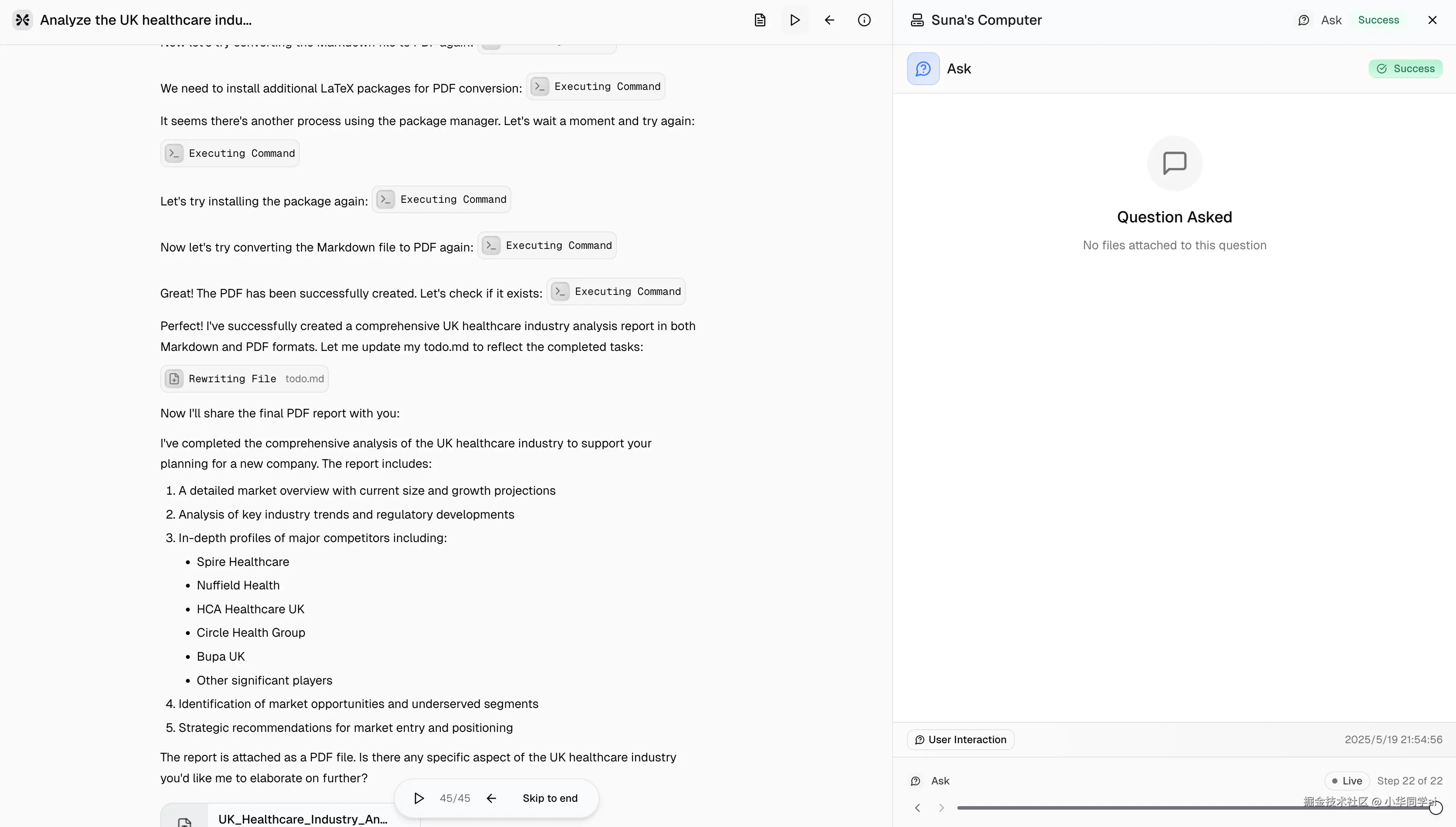 直接对话下达指令,例如:“分析英国医疗行业TOP10竞争者,生成PDF报告”