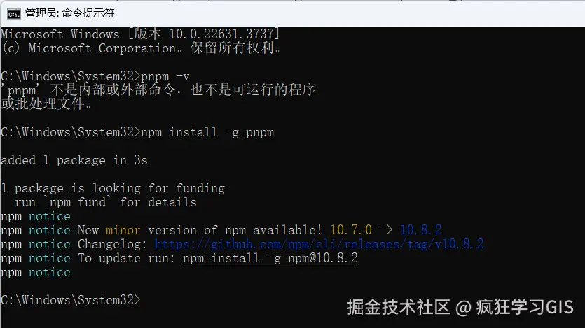 此时,再次执行npm或者pnpm命令,就没问题了。