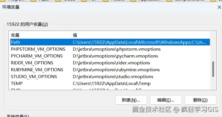 随后,按照文章# 如何配置电脑的环境变量(用户变量、系统变量)?中提到的方法,将以下3个路径添加到系统变量的Path中。