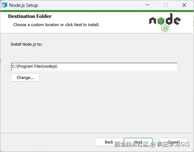 随后,双击上述.msi格式文件,即可开始安装Node.js,如下图所示。