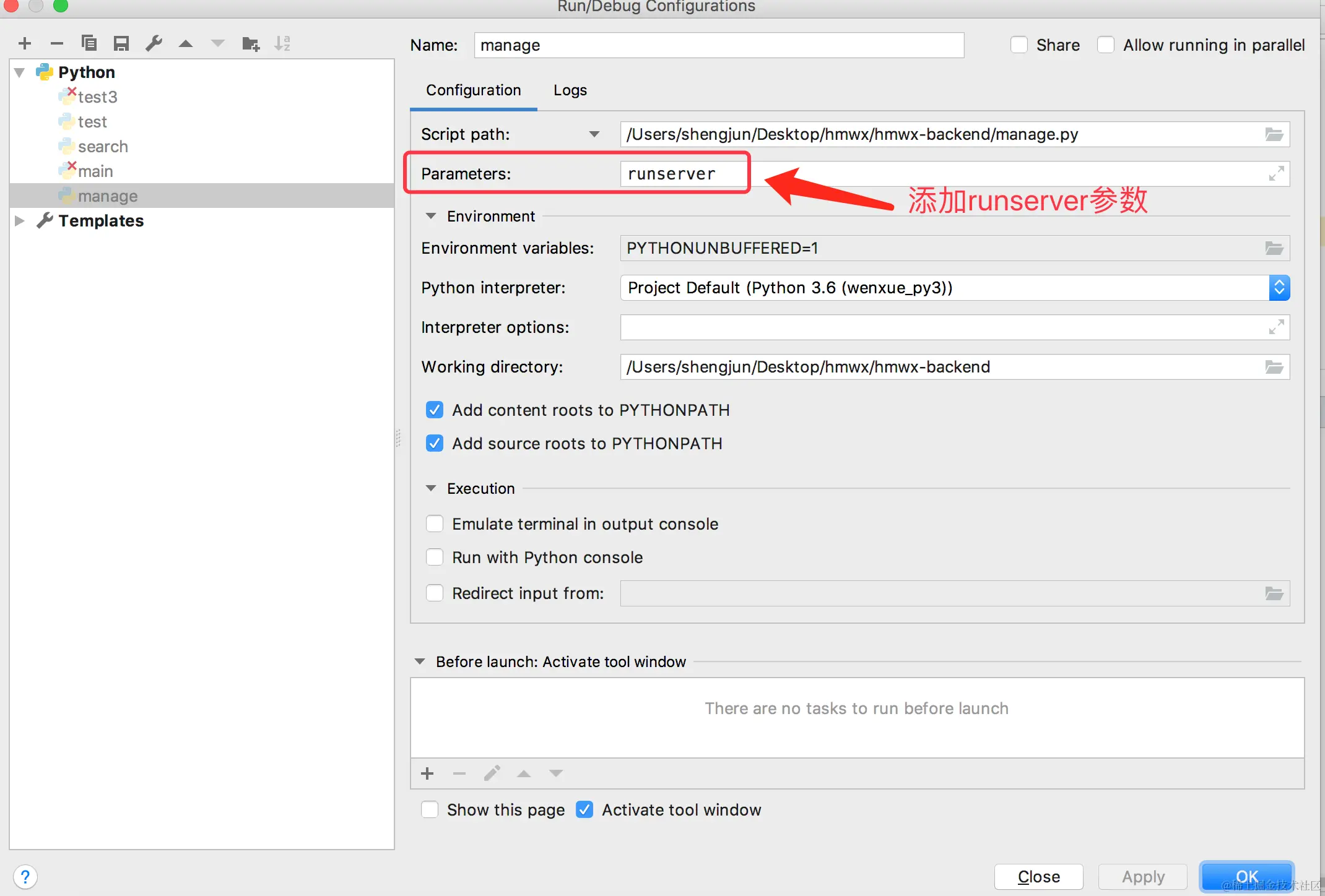 - 第二种:编辑Pycharm的manage.py文件的配置信息,具体见如下4步。