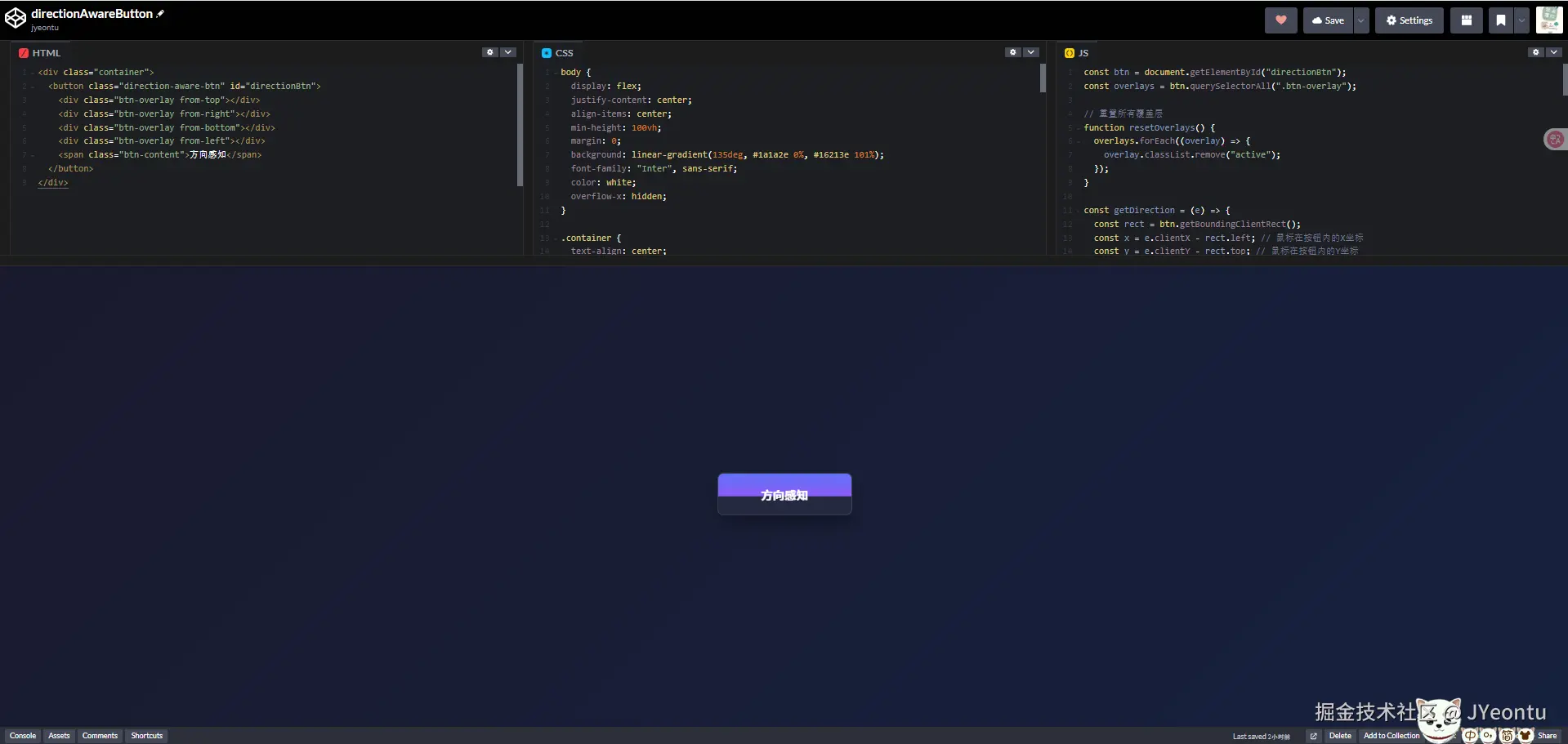 <button class="direction-aware-btn" id="directionBtn">