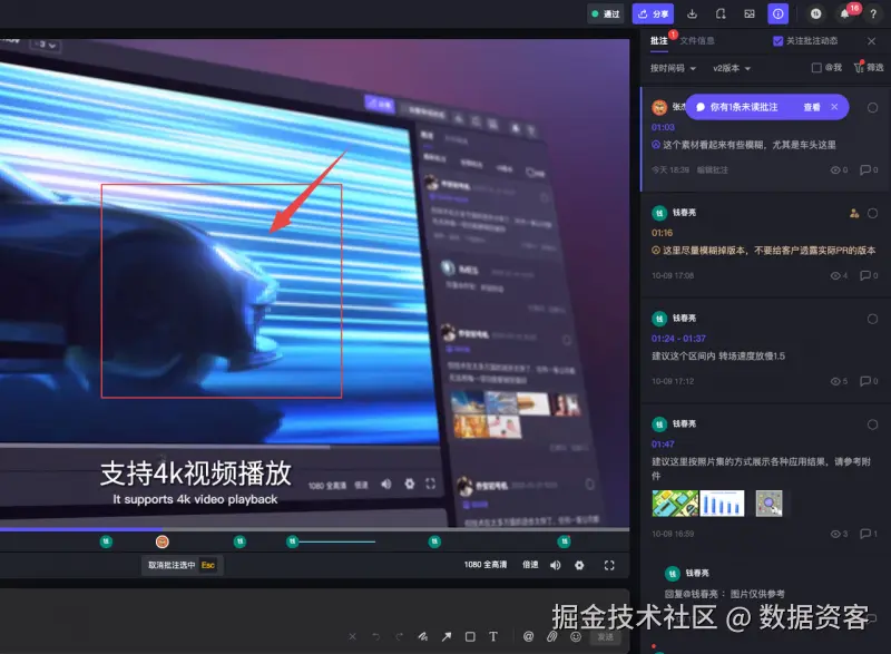 广告行业:客户直接在视频画面上标记问题点,反馈修改意见,精确到帧(如“更换车型颜色”“调整LOGO位置”),创意工作流提速3倍。