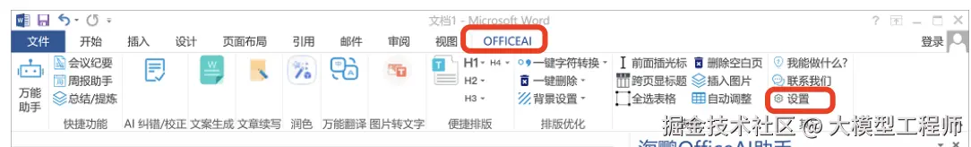 (2)点击“OfficeAI”选项卡,点击“设置”。