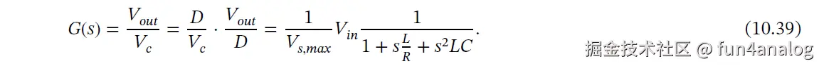 Vc到Vout的传输函数, the control-to-output (plant) transfer function G(s) 包括 PWM比较器和power stage. PWM比较器传函为D/Vc = 1/Vs,max