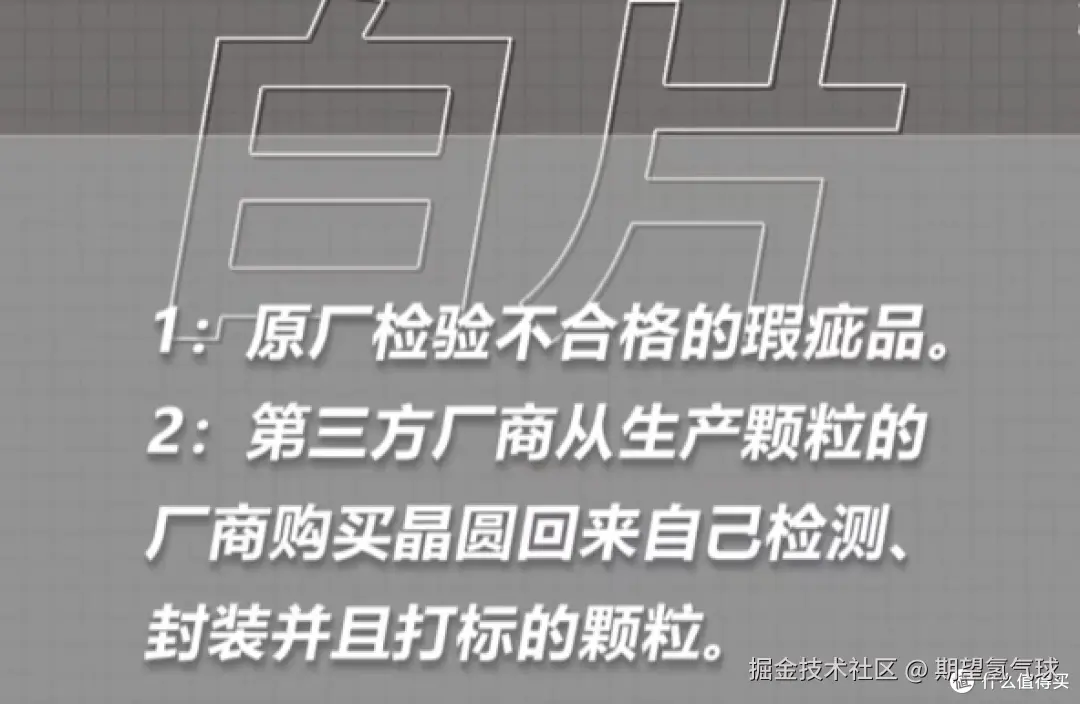 - 白片:测试筛选下来的瑕疵品,性能较低