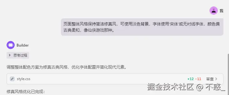 整个过程我几乎没动手写 HTML 和 JS,甚至连 div 和 span 都没想结构,Trae 都给我搭好了。我要的只是灵感、想法、剧本,而 Trae 做到了剩下的全部。