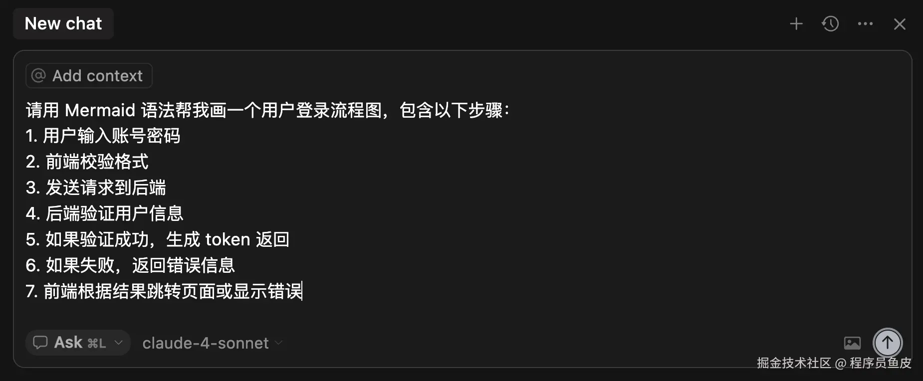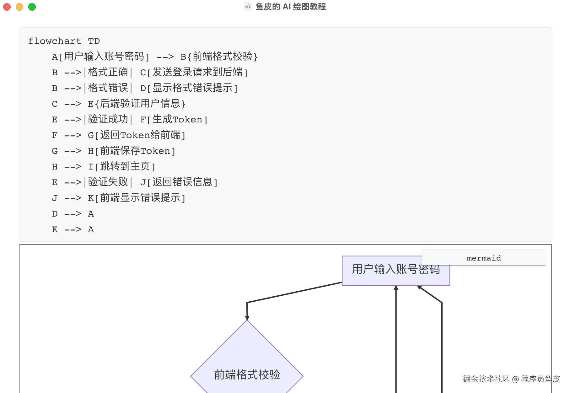 让我们先来画一个用户登录流程图,只需要给 AI 这样的提示词: