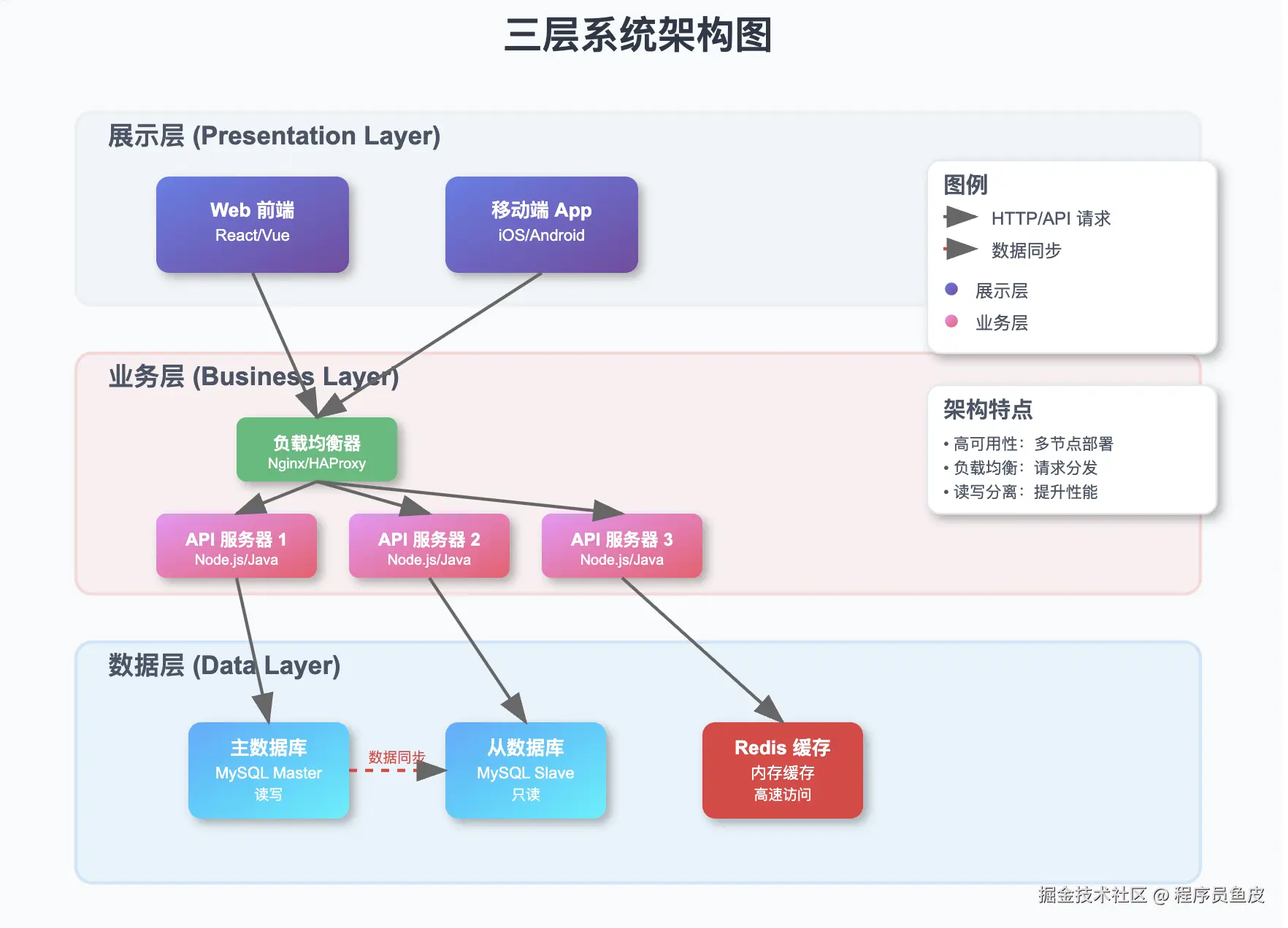请生成一个 SVG 格式的系统架构图,展示一个典型的三层架构: