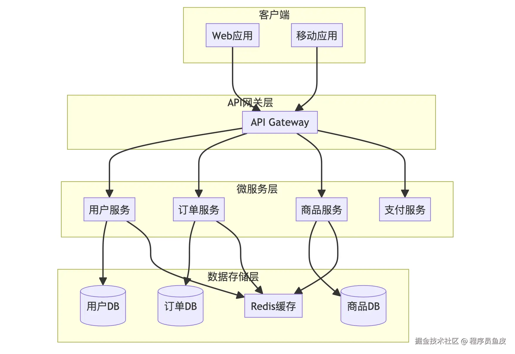 1. 架构图分层清晰:展示层、网关层、服务层、数据层
