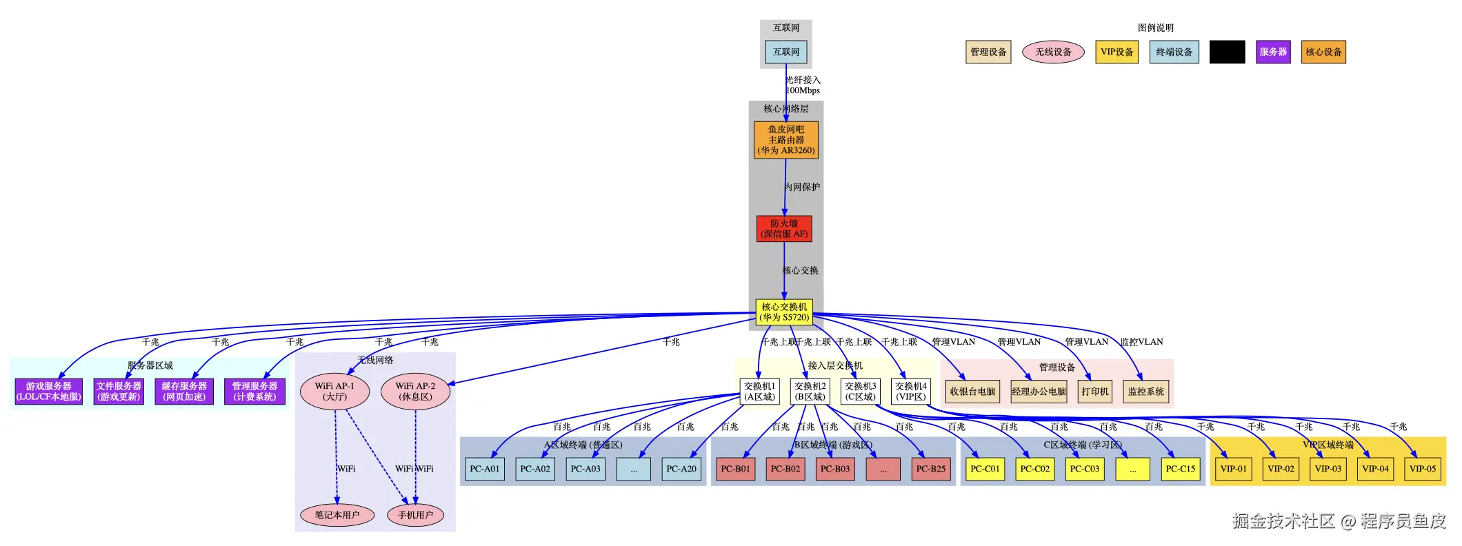 比如鱼皮给自己的野鱼网吧生成了一份网络拓扑图: