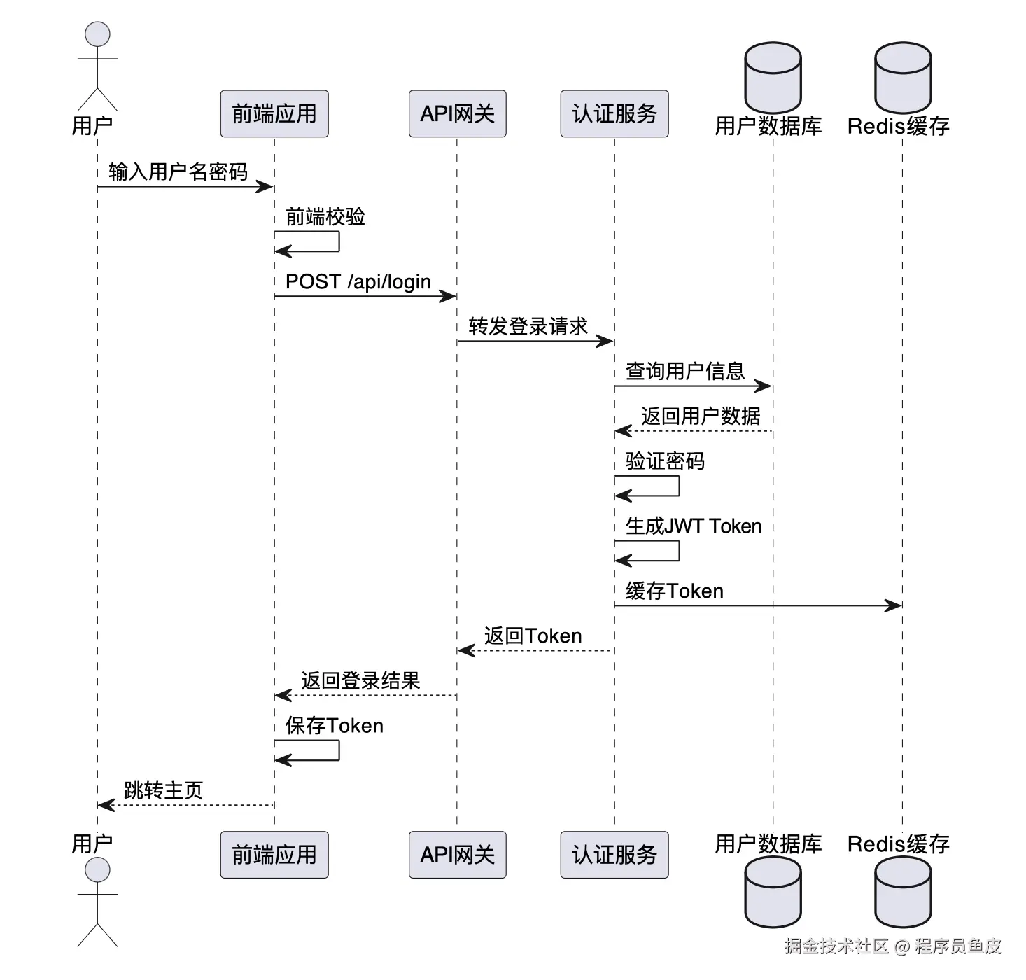 PlantUML 还特别适合画复杂的时序图和系统架构图。比如一个完整的登录时序图: