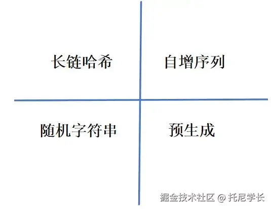 接下来,我们来讲讲短链生成的实现原理:长链哈希、自增序列、随机字符串和预生成四种方案。