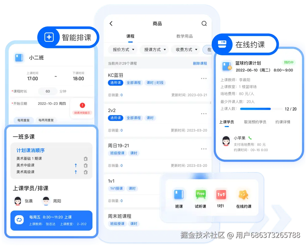 - 招生与排课数据互通,试听学员可直接关联正式课程安排,提升转化效率。