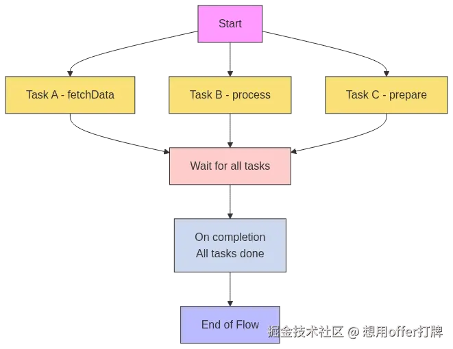 上面讲解了如何链式调用任务,属于是微信接龙形态的(hh,开个玩笑),现在我们来讲并行执行两个异步任务,并将它们的结果合并处理。