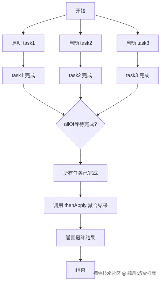 如图是依靠CompletableFuture来实现的异步并行任务,聚合结果的示意图: