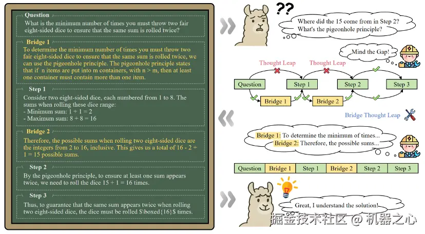但你是否注意到:即使是精心构建的 CoT 数据,也可能存在 “跳跃式” 推理,缺失关键中间步骤。对人类专家来说这些步骤或许 “理所当然”,但对模型而言,却可能是无法逾越的鸿沟。