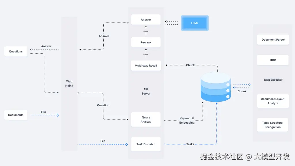 RAGflow 整体的系统架构图如下: