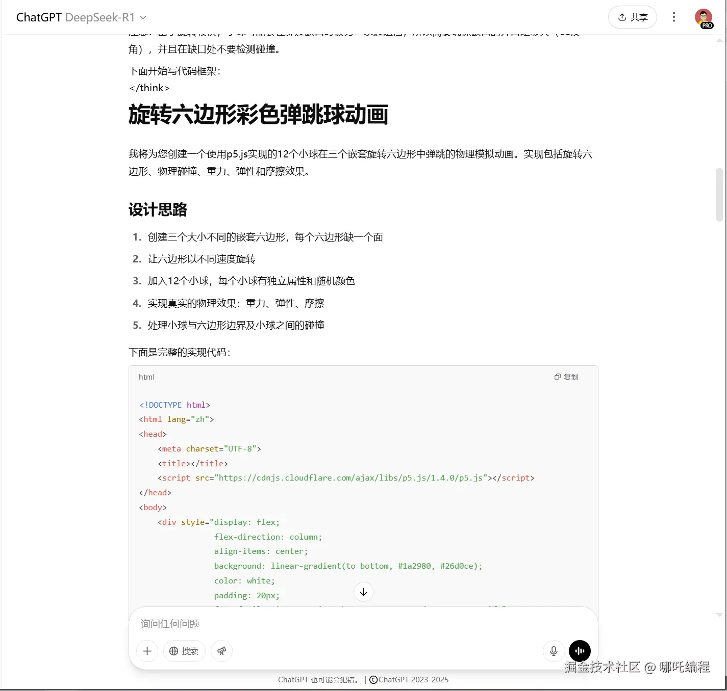DeepSeek-R1-0528在前端代码生成、角色扮演等领域的能力均有更新和提升。