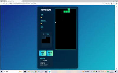 游戏功能全面,包括:方块生成与旋转、消除计分、难度升级、下一个方块预览、键盘/按钮控制、游戏状态管理(开始/暂停/重置)等。
