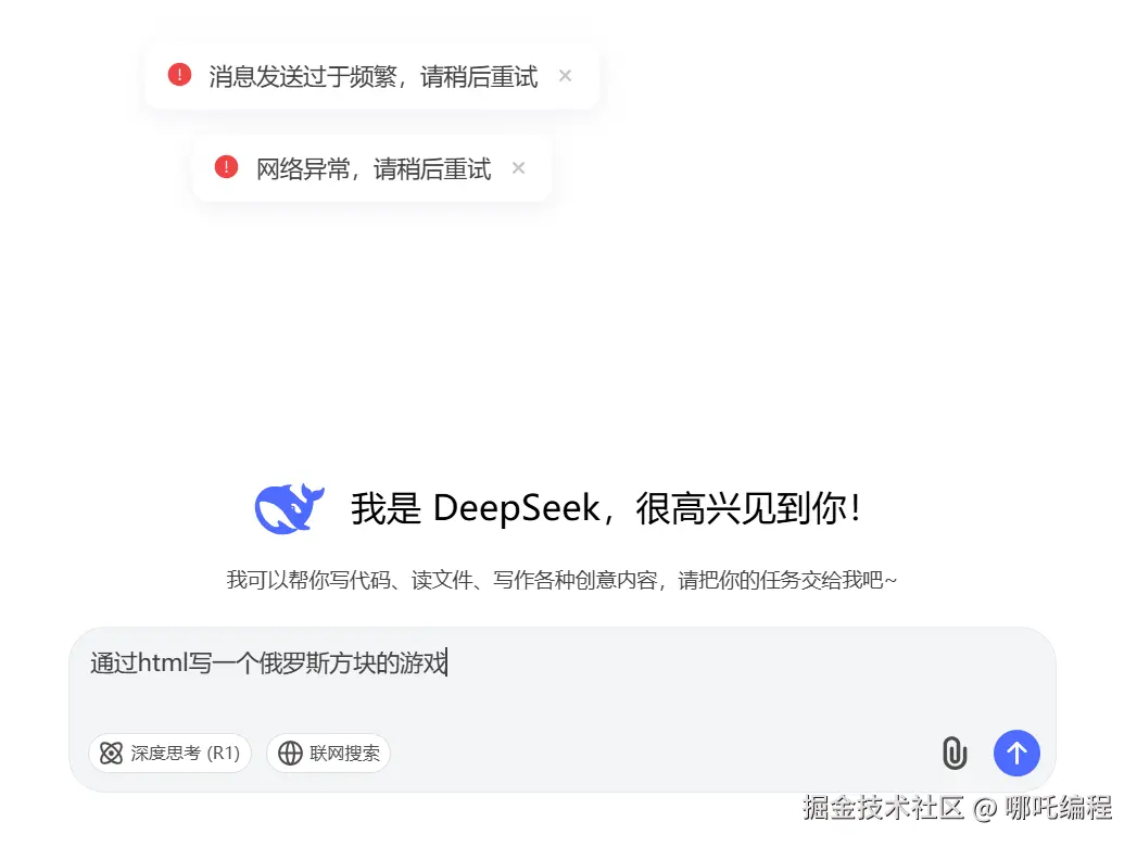 通过DeepSeek官网,没用几次,又“网络异常,请稍后充实”了,真实蛋疼。