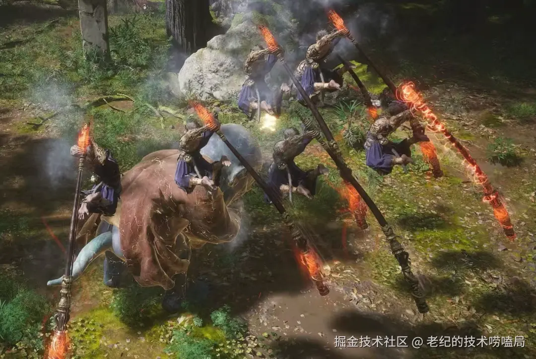 不过从第二关的虎先锋开始,游戏难度陡然而增,作为手残玩家,只能靠 “身外身法”,也就是通过吹毫毛召唤一群和玩家一模一样的小猴子来并行攻击敌人。然后就全程重度依赖这个类似于多个 Worker 并行执行玩家指令的法术,一路打到通关。