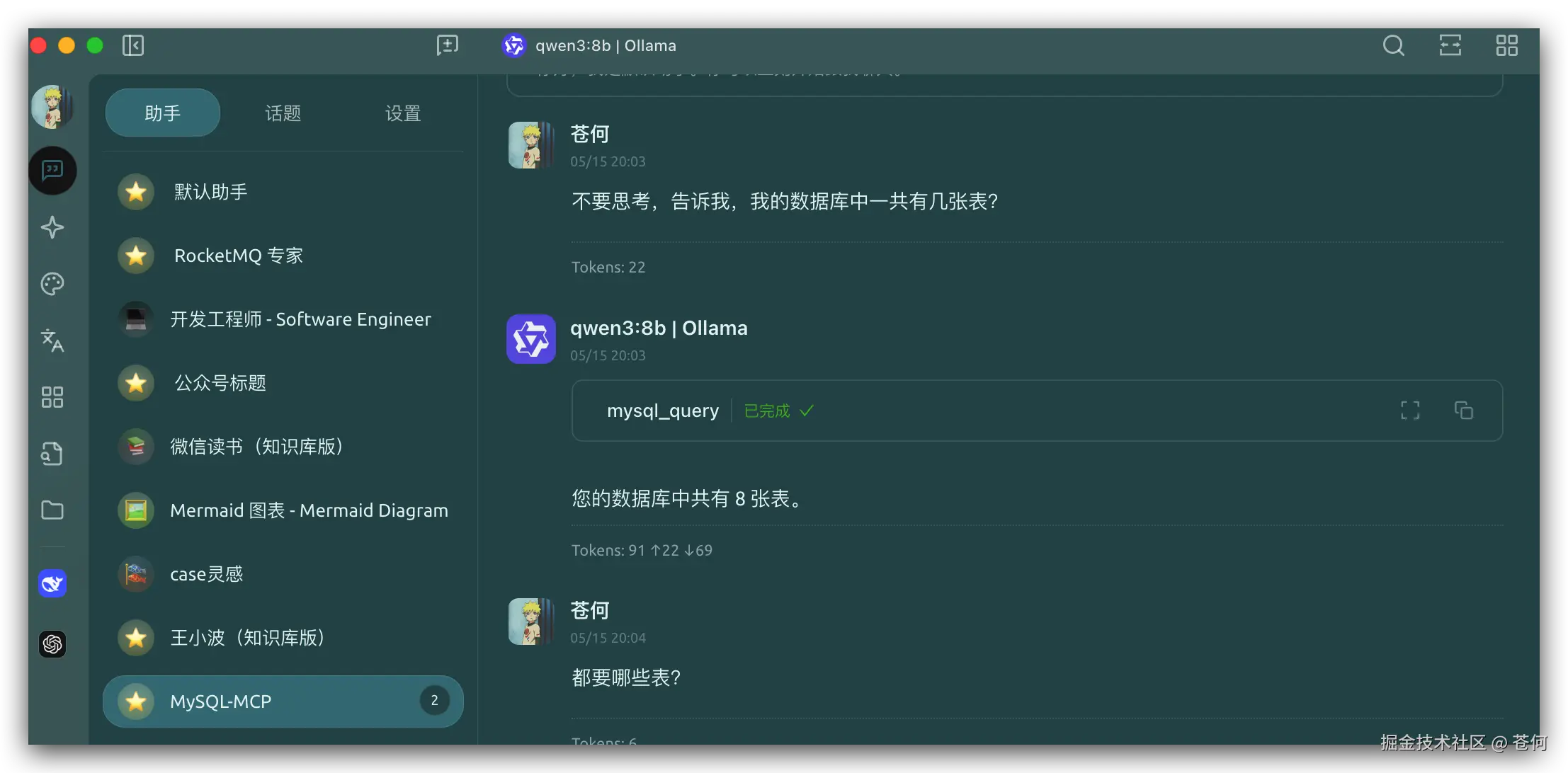 但现在如果你用的是本地部署的 Qwen3,真的就做到了全链路的私有化,你的数据库在本地、大模型在本地、MCP Server 也在本地。
