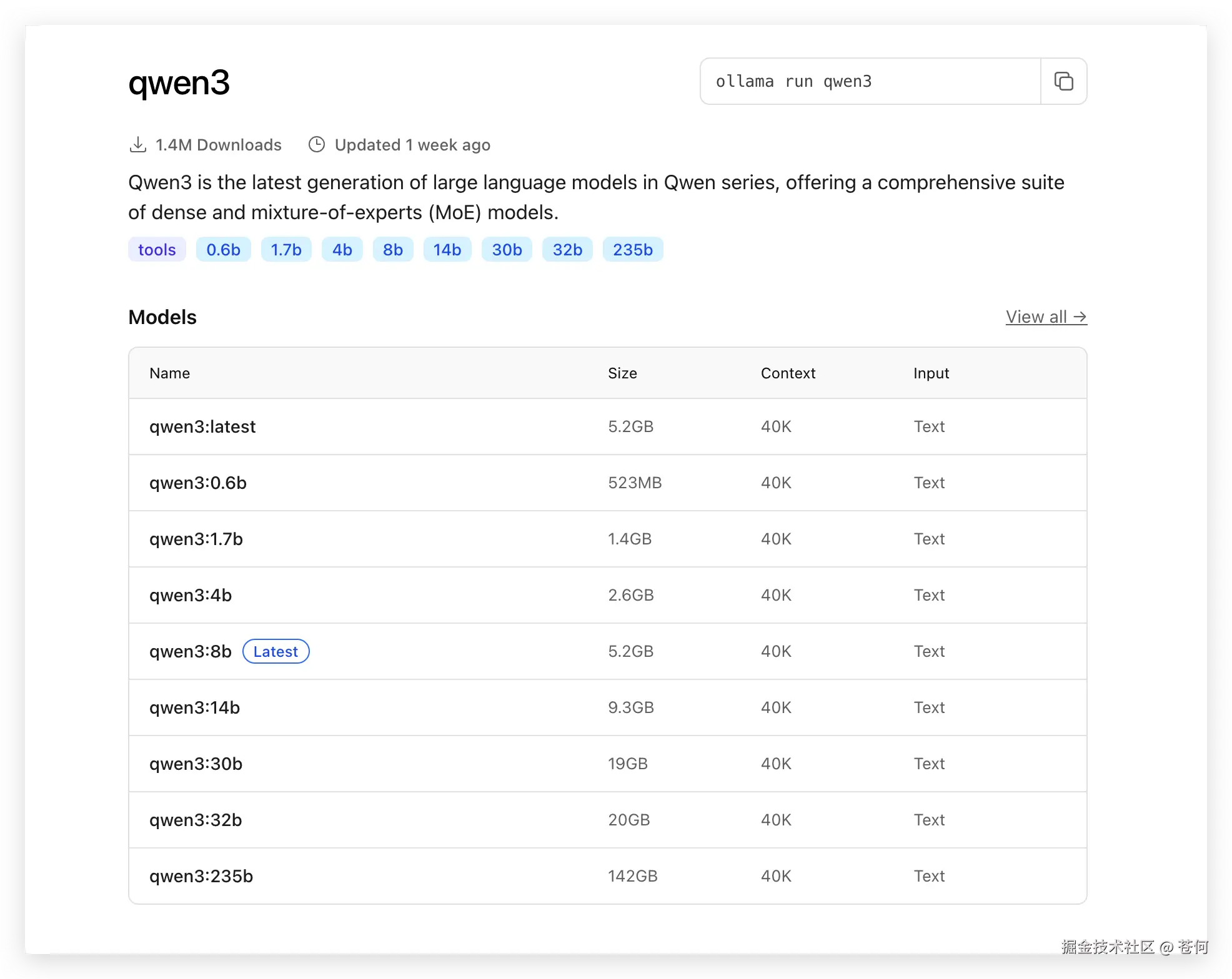 当然你也可以向苍何一样本地部署个小模型 Qwen3,玩一玩,还可以进行微调。