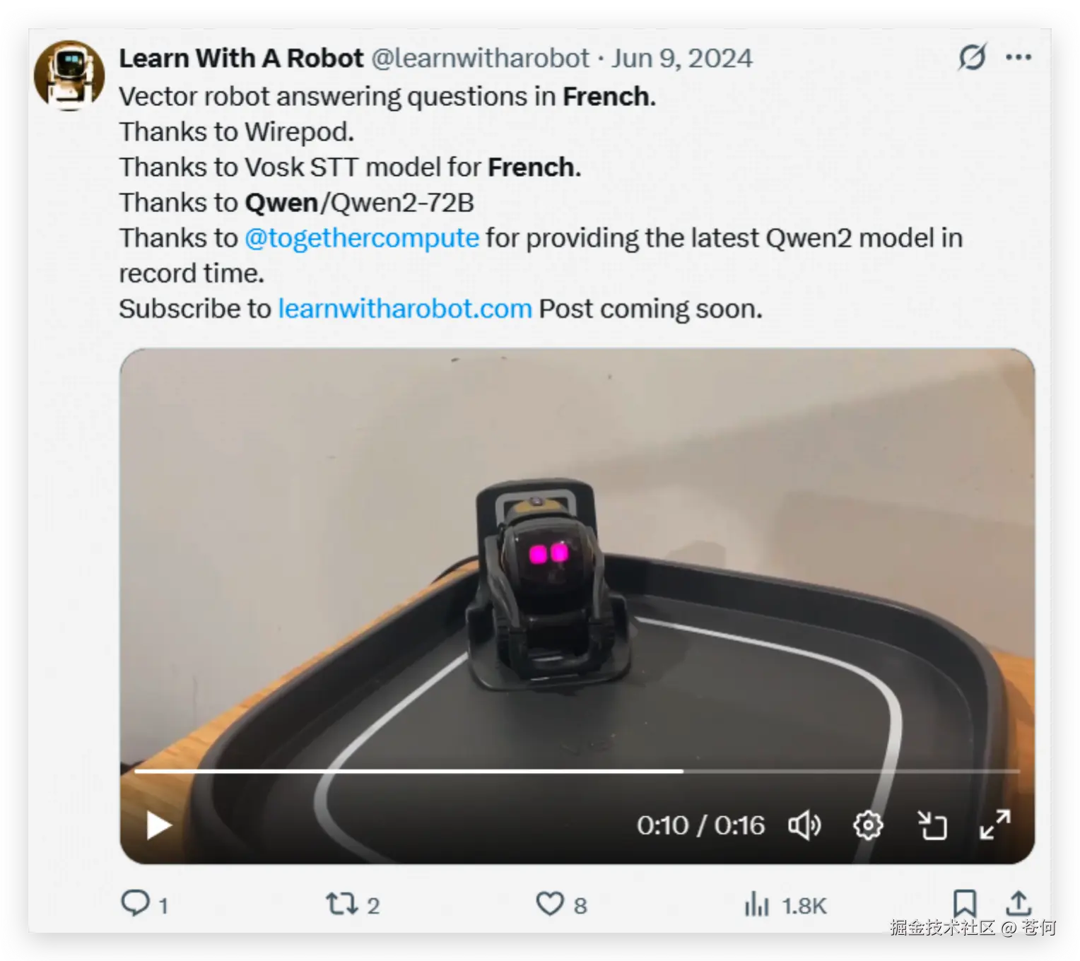 比如这位国外的 X 老哥基于Qwen/Qwen2-72B 开发了个用法语回答问题的机器人。