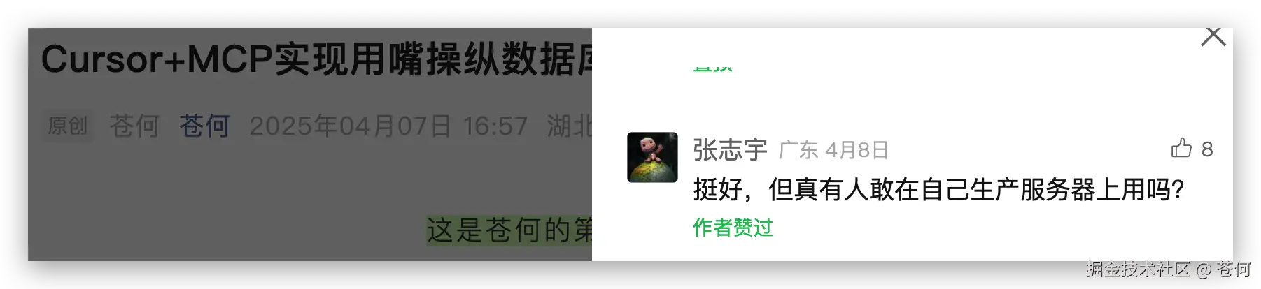 在之前的这篇文章:Cursor+MCP实现用嘴操纵数据库,很多人担心在 Cursor 中操作数据涉及到数据隐私问题,不敢玩。