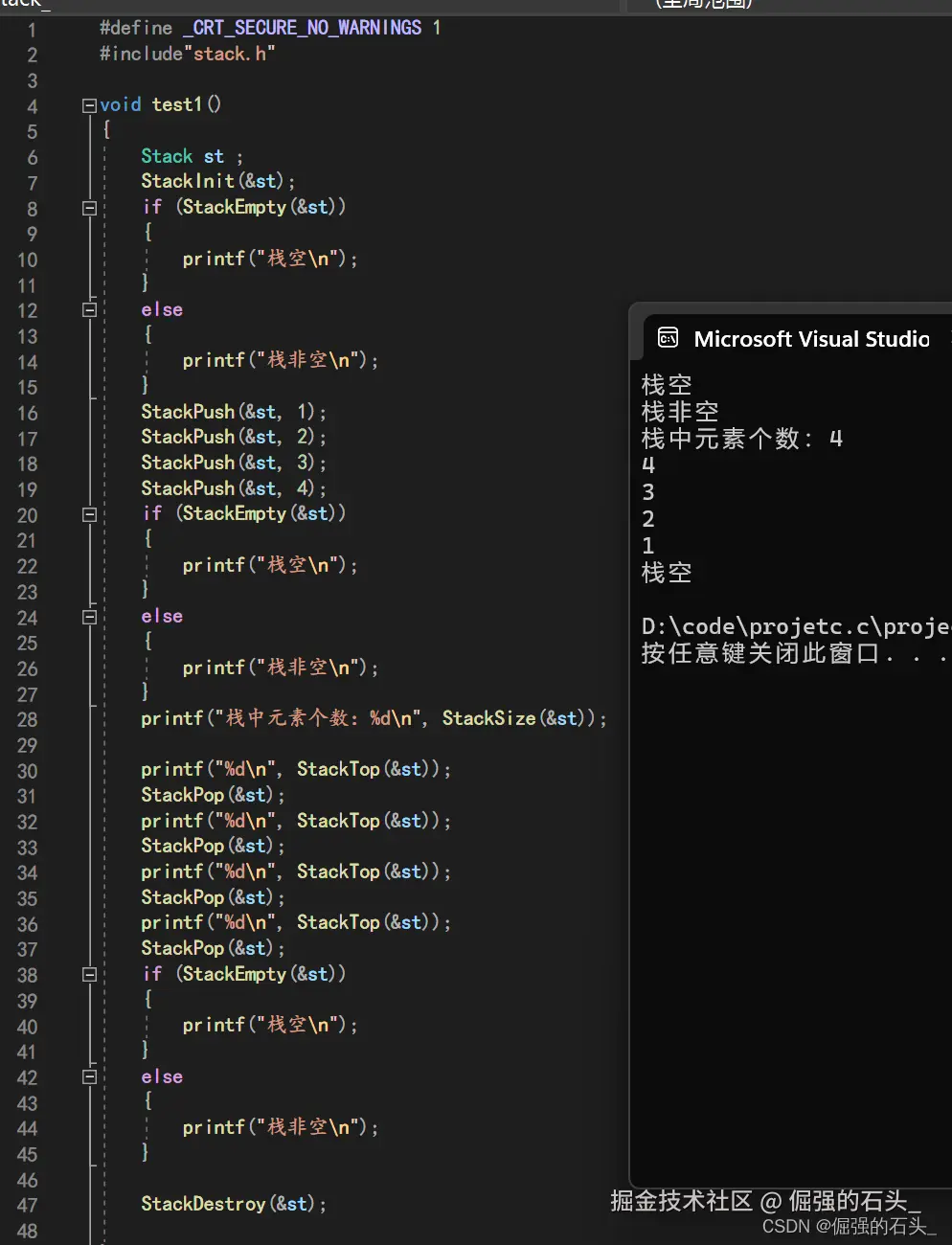 四、使用数组实现栈的C语言代码