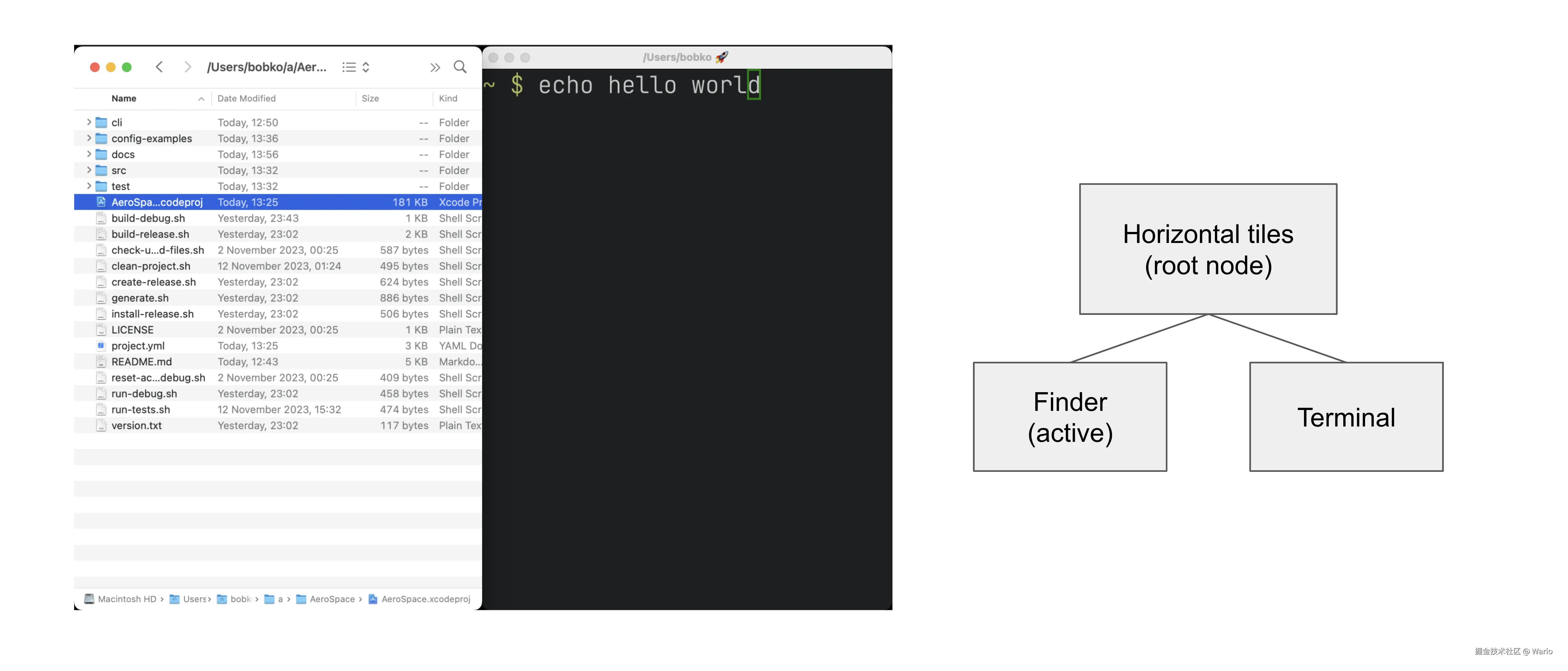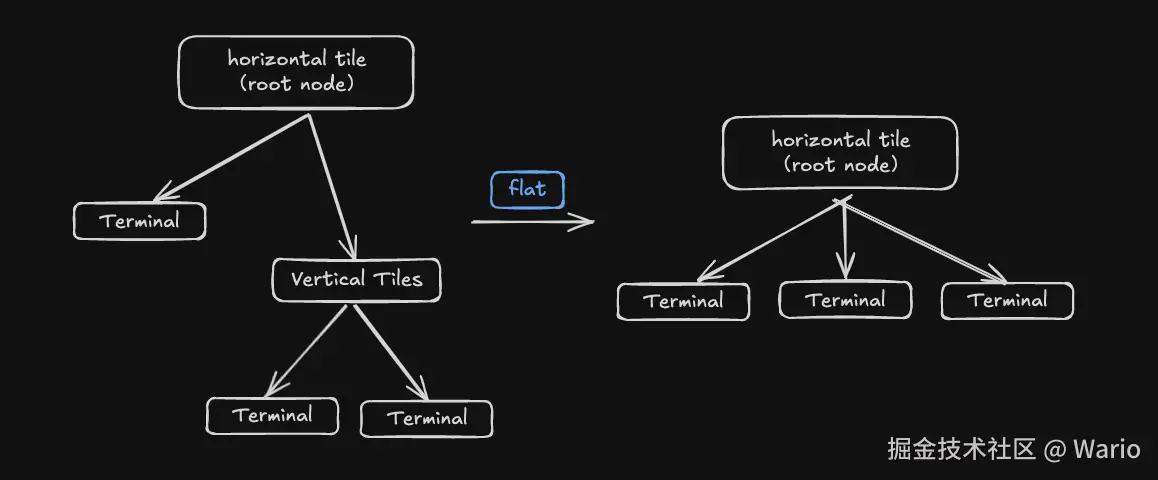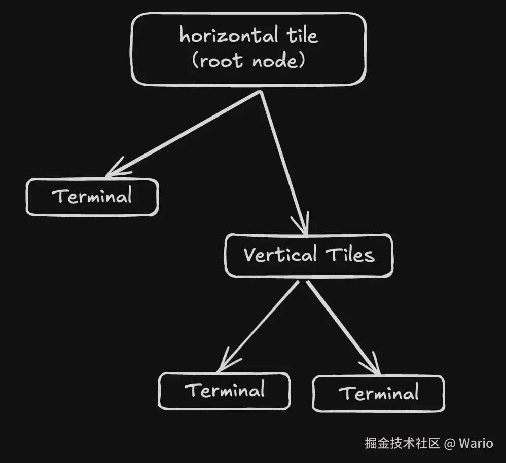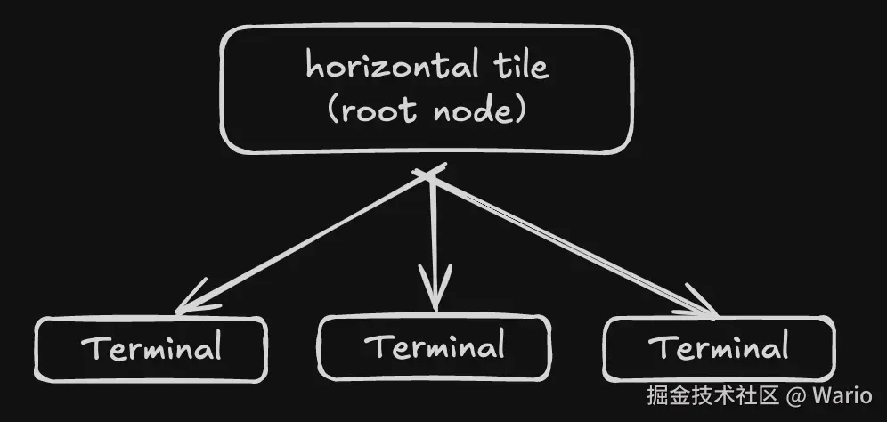 在 Aerospace 平铺窗口管理器中,每个非叶子节点被称为 “容器”(Container)。 比如👇这张图片中,根节点 root node,就是一个所谓的容器