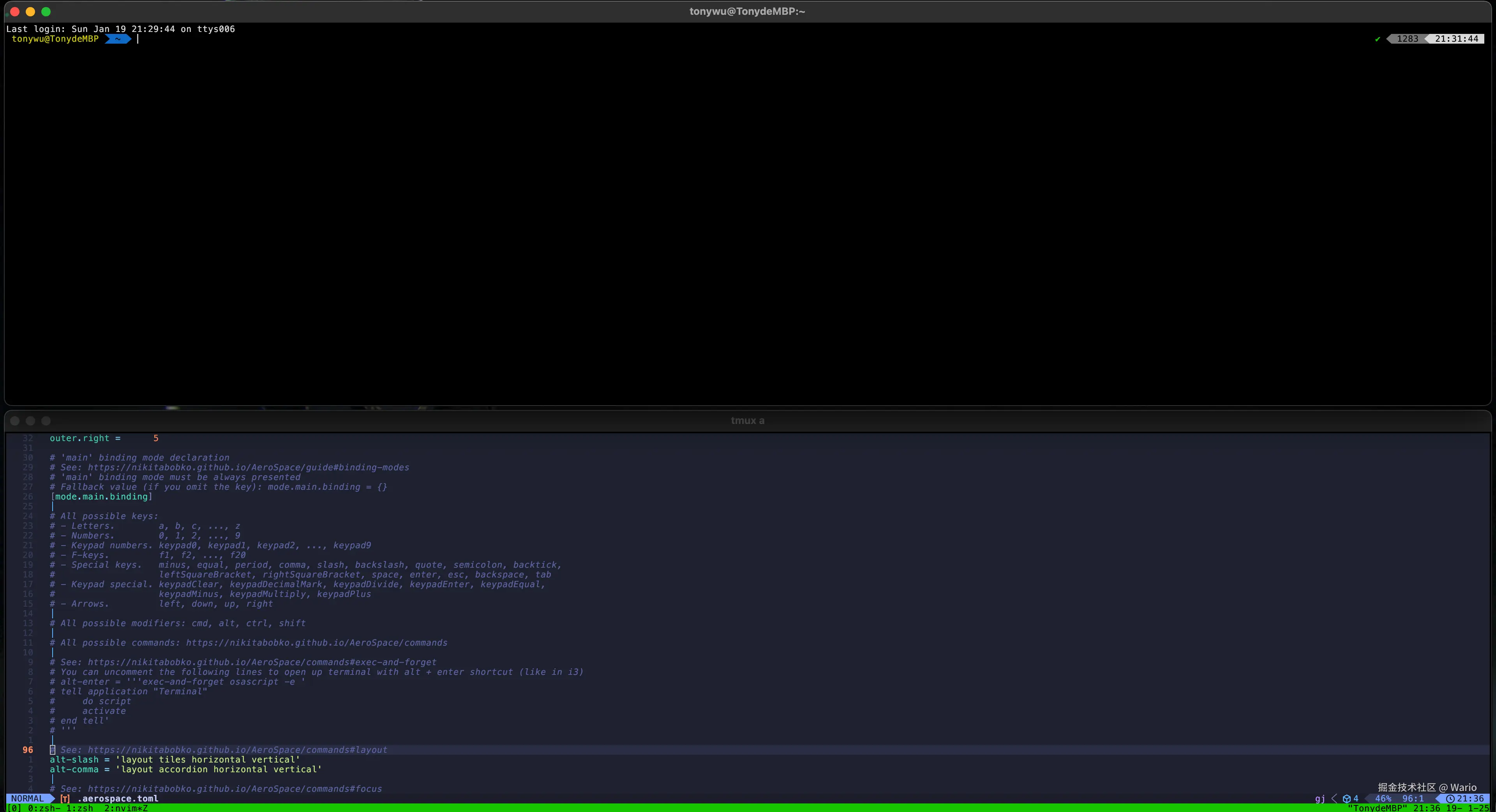 .aerospace.toml文件中—— Aerospace##default-config - 使用命令: