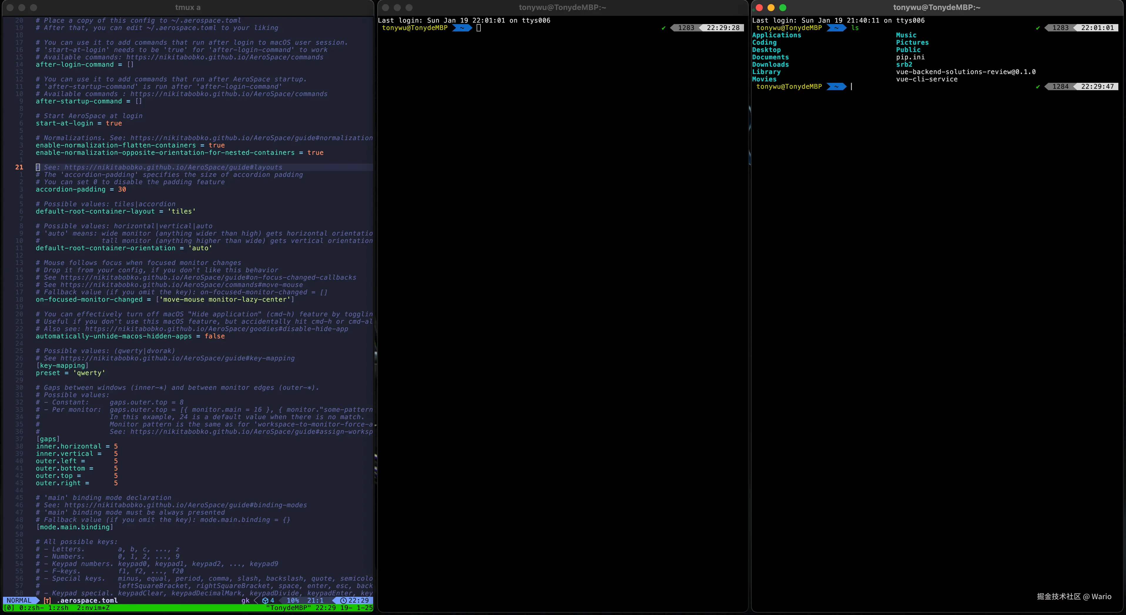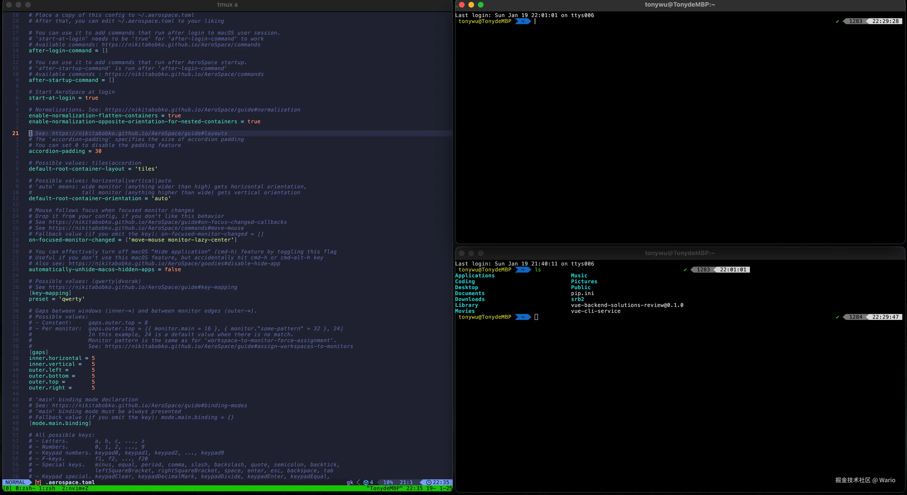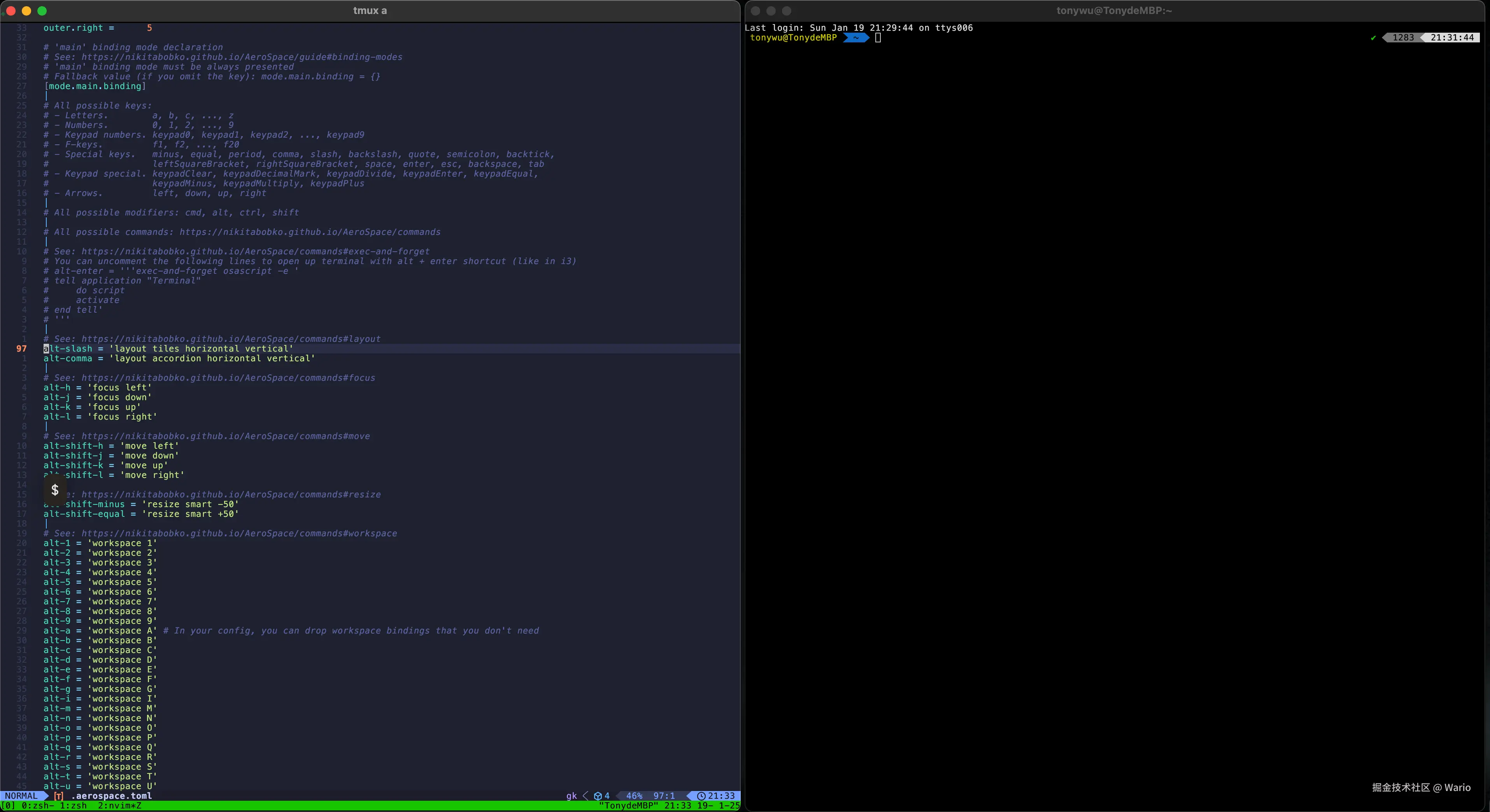 此时按下 esc 就可以加载修改后的 .aerospace.toml 配置了!