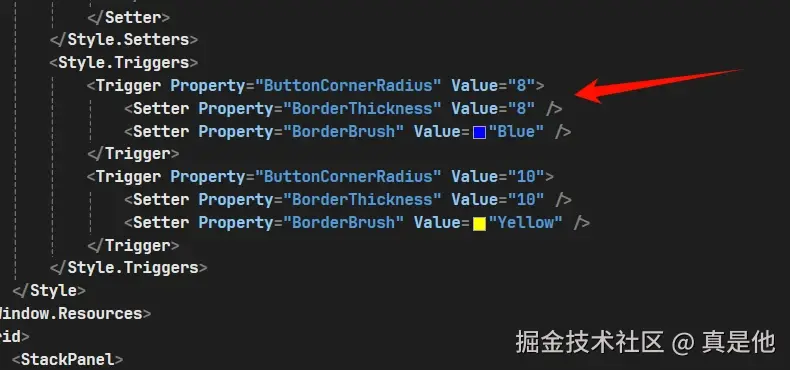 <Trigger Property="ButtonCornerRadius" Value="10">