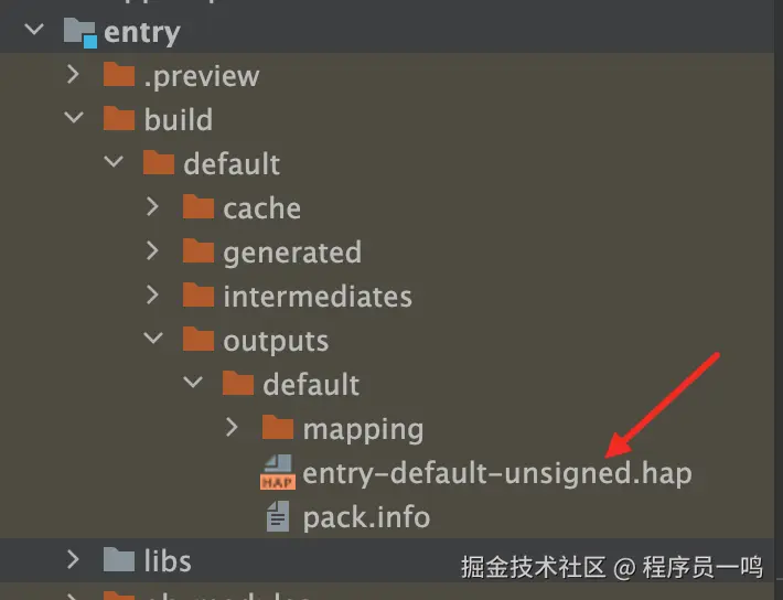执行完命令后,最终会在主模块中,生成一个hap包,目录如下:
