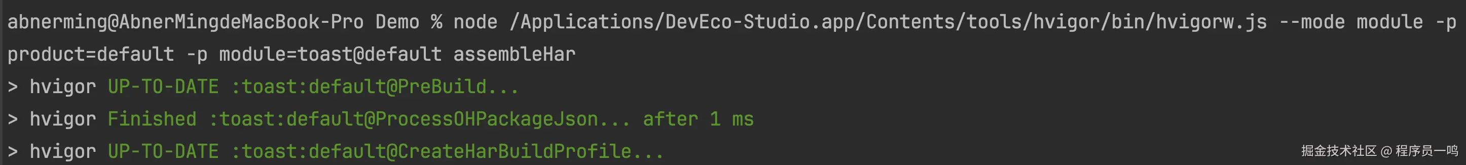 hvigorw + --mode module -p product=品类信息 -p module=模块名 assembleHar