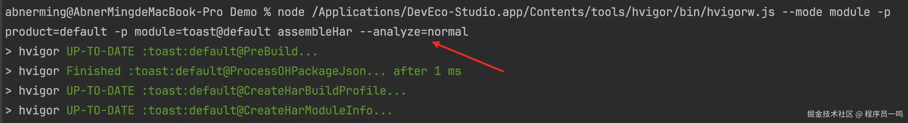 如果说你要在构建包的时候,要对静态包进行开启Build Analyzer构建分析,那么我们追加命令,通过--analyze=normal,来实现简单打点数据进行分析。