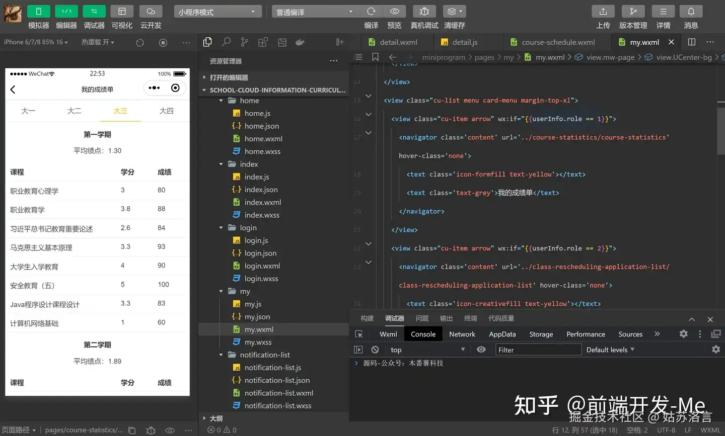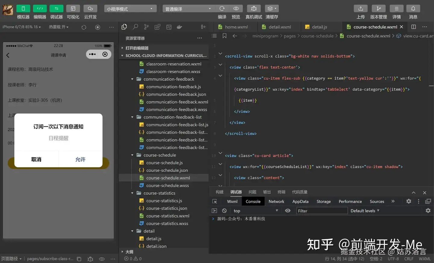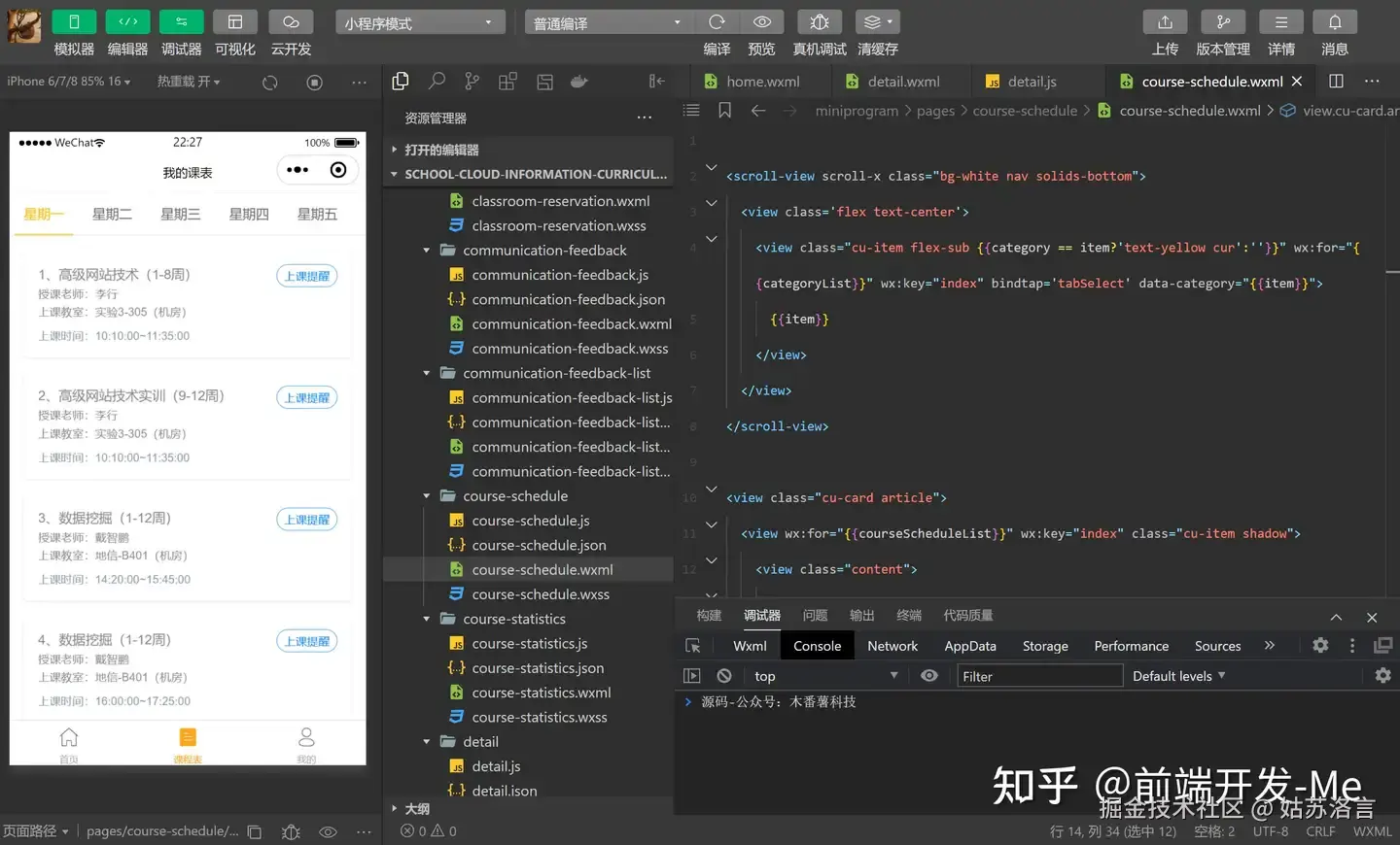 1. 课表展示(miniprogram/components/schedule)