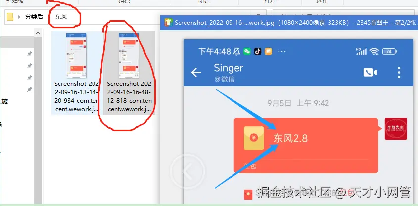 在这些图片里,需要按发出红包的备注来分类的,比如下面这种: