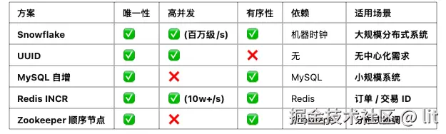 • 高并发业务(如订单、用户 ID):🚀 Snowflake